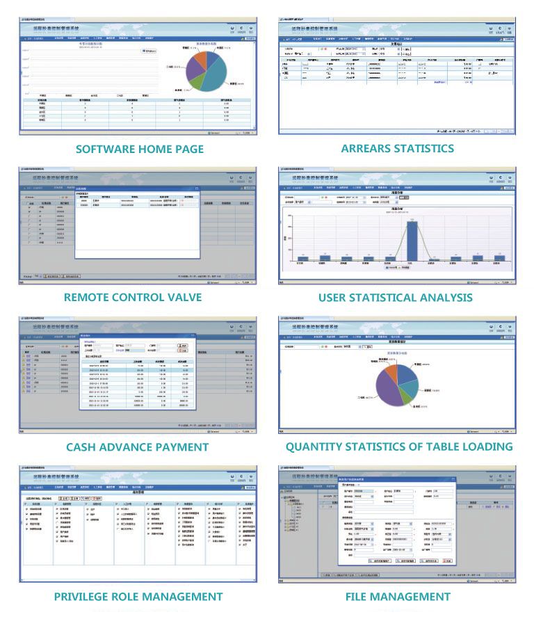• This software can remotely transcribe the current data, daily freezing data and monthly freezing data of gas meter, and pay for remote prepayment, post-payment and account pre-deposit. It supports short message reminder function of arrears and remote switch valve. The system has perfect query function and statistical analysis function of report forms, which can meet the daily revenue business of users in gas industry.
