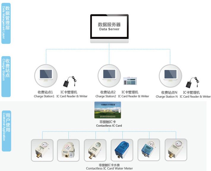 管理(lǐ)部門(mén)将用戶所交費用寫入IC卡,刷入數(shù)據的水(shuǐ)表自動供水(shuǐ)并核算(suàn)剩餘量,水(shuǐ)量用完後關閥停水(shuǐ),重新購水(shuǐ)後方能使用;